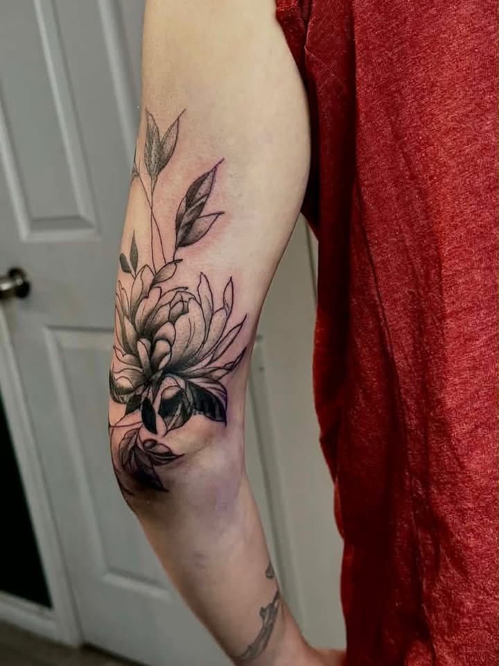 Black and Grey Tattoo Style Beautiful Florals 11 Dec 2025 1 min read Beautiful florals for a wonderful person! Thanks for the laughs and gossip! Always a good time!